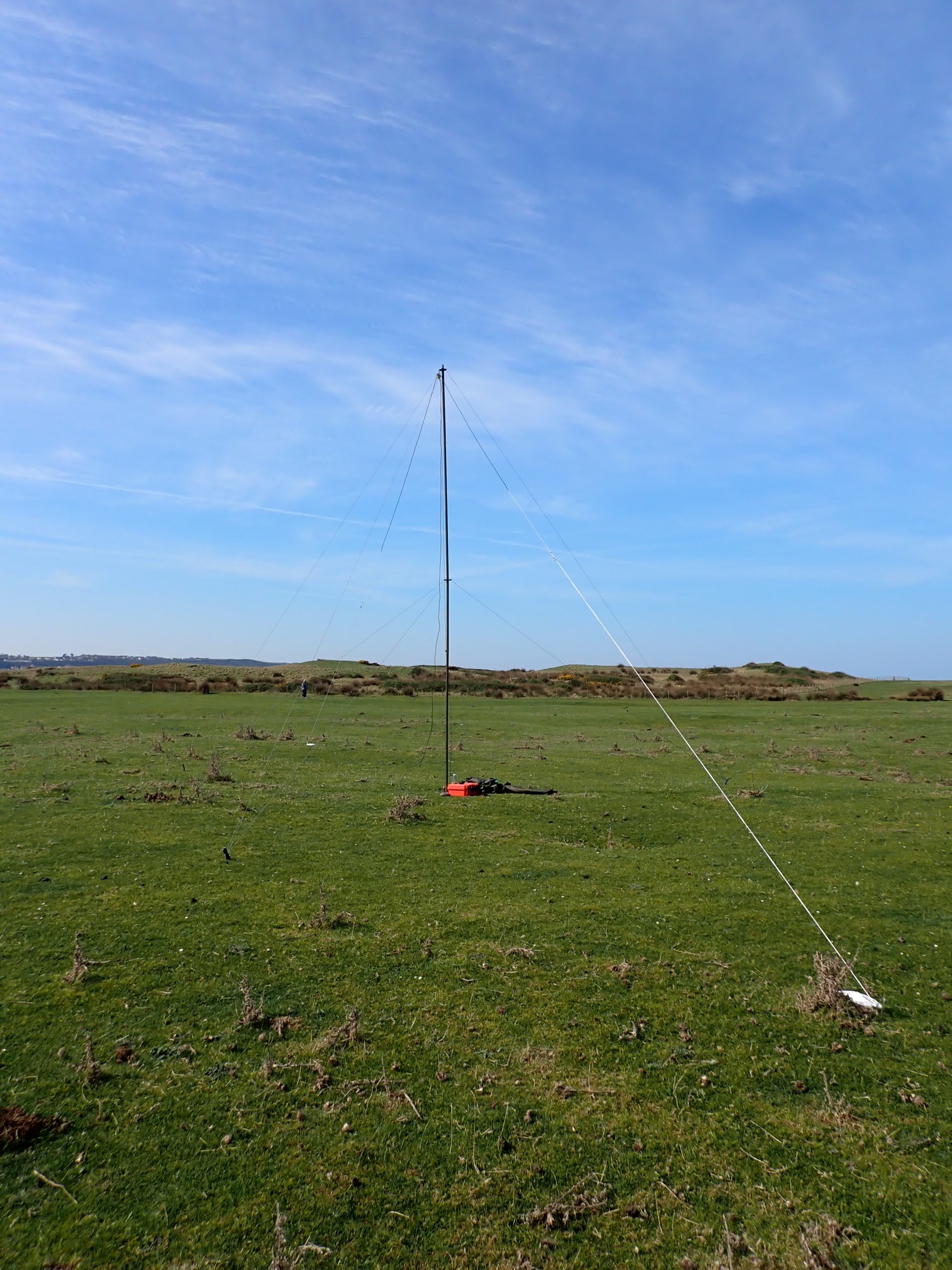 Initially I thought it would be nice to set up literally on the site of the old radar installation but it was right by the entrance to the country park and very busy so instead I walked a little further and found a quieter spot with nice views out over the water and across the country park. The mast was soon up and the 20m band double bazooka hoisted to the top in an inverted V configuration.